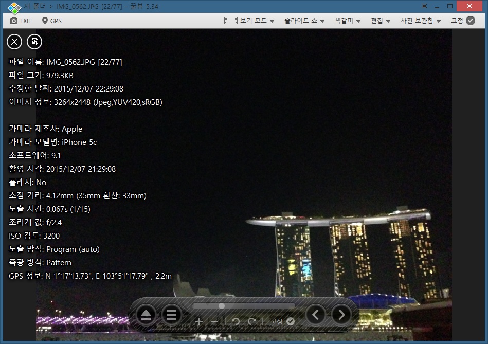 사진이 찍힌 곳(EXIF 정보)의 지도 열기: Ctrl+Shift+G